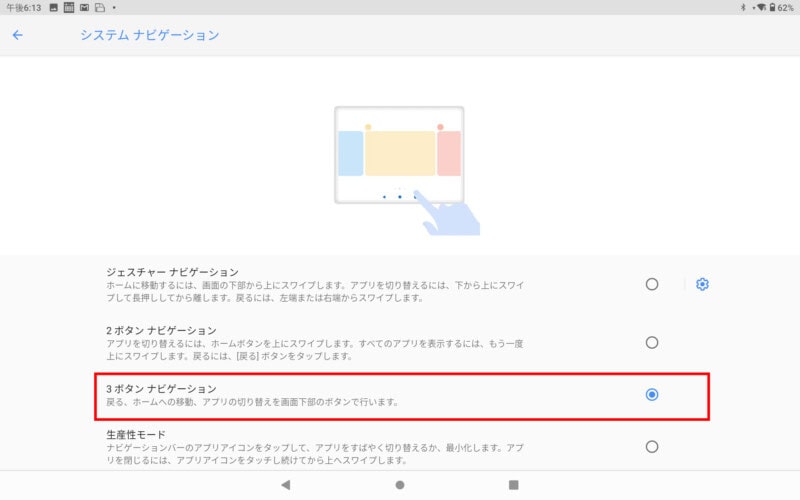 Android10にアップデートしたら操作がジェスチャーモードになってしまったので3ボタン・ナビゲーションに変更しました。