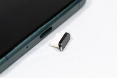 少し濡れても大丈夫とはいえ、イヤホンジャックとUSB-Cコネクタはキャップで保護するのが安心。とくに、USBコネクタが濡れてることに気づかずに使うとショートして故障します。充電の電力だと熱くなって燃えるかもしれないので要注意です。