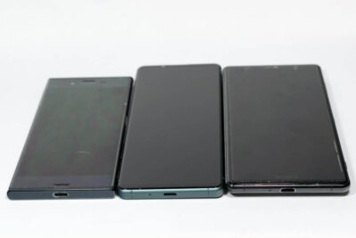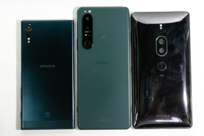 写真は左からXperia XZ SOV34、Xperia 1 III XQ-BC42、Xperia XZ2 Premium SOV38。