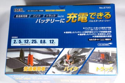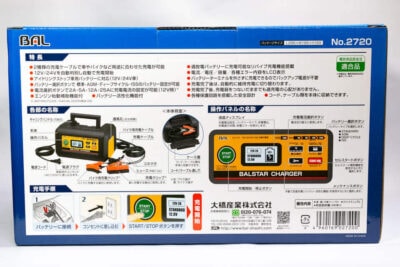 大橋産業のNo.2720 BALSTAR CHARGERは原付バイクからトラックまで幅広くつかえる12V/24V対応のバッテリー充電器です。