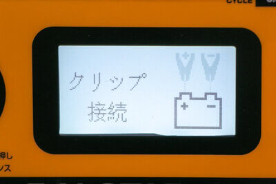 24Vの場合は充電電流は12A固定となります。バイク用のクリップを使用した場合は0.8A固定となります。