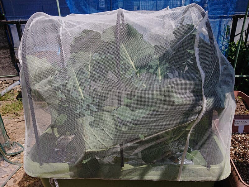 ブロッコリーは小さな蝶々が入り込むとアオムシが増えて葉っぱが食べられてしまいます。