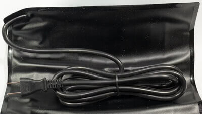 コンセントを接続するだけで温まるシートです。この上に苗ポットを置くことで温まります。苗ポットは水が外に出ないトレイの中に置きます。