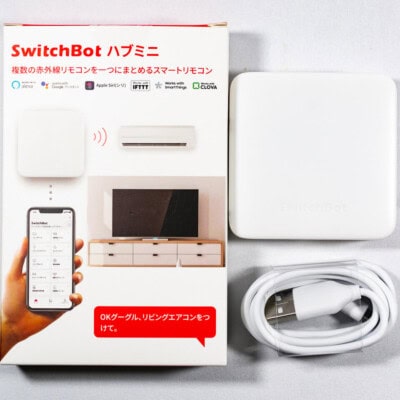 スイッチボットシリーズを連携して管理するのに必要な中央管理のハブです。温湿度計とプラグをシーン設定やスケジュールで連携して自動で操作することができます。2.4GHzのWiFiでインターネットに接続できるルーターが必要です。