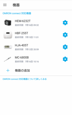 オムロンコネクトをインストールして、機器の追加で体温計を追加します。