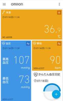 元々オムロンコネクト対応の、血圧計、体組成計、活動量計を使っていたので、そこに体温計が追加となりました。