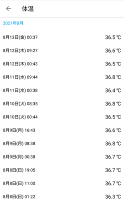問題なくスマホに転送できてさえすれば快適です。転送したときの時間で自動的に体温が記録されます。