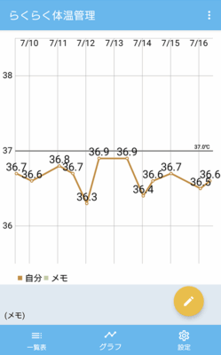 Androidでは「らくらく体温管理」を使うと体温を簡単に入力してメモを追加することもできます。自分だけでなく家族の体温も管理することができます。