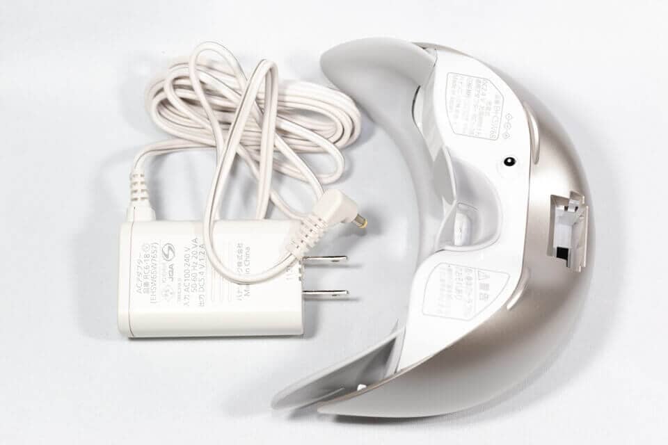 充電用のアダプタはAC100-240V対応です。コンセントの仕様は日本仕様なので、海外で使う場合は現地の形状に合わせた変換プラグが別途必要です。