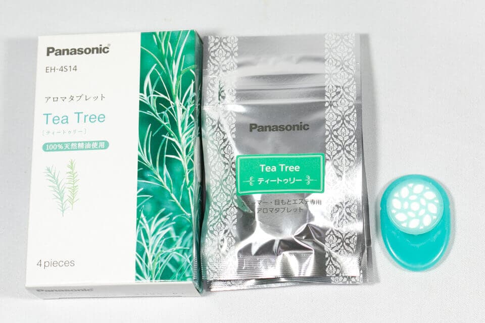 オプションでアロマタブレットを装着することができます。一箱4個入りで、1個はスチーム12分間で15回、スチーム無しの12分で30回分となっています。1個ずつチャック付きのアルミパックになっているので、使ったら仕舞う必要があります。そのまま放置してると自然と香りが抜けてしまいます。
