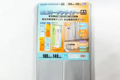 サイズは100(幅)x140(丈)cmや100x200cmなど使用しているカーテンや窓の大きさに合わせます。通常のカーテンは床より少し上にしていることが多いと思いますが、断熱カーテンは床に密着して隙間が埋まっている必要があります。