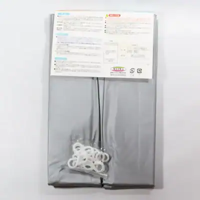 楽天で売っていた明和グラビアの100x140cm 2枚入り無地で遮光のグレー を購入しました。生産国はメイドイン・インドネシアでした。
