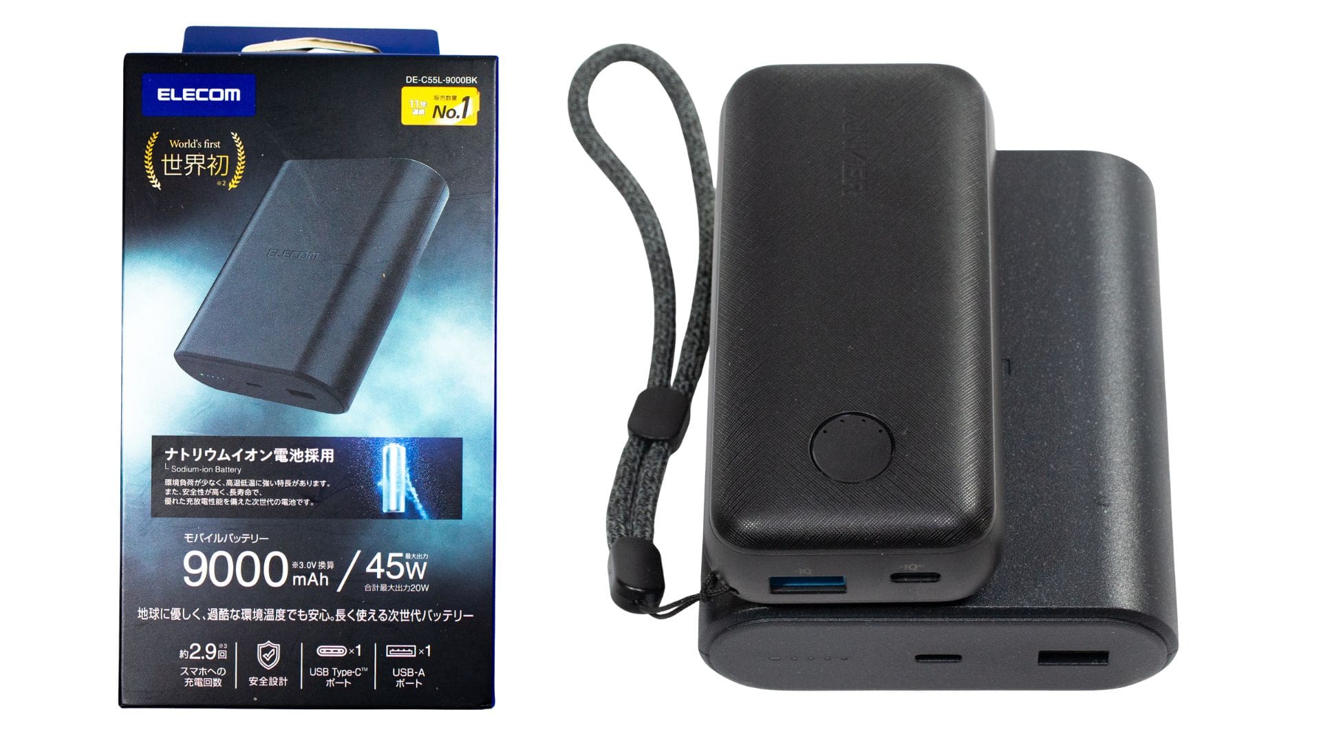 PD最大45W・高寿命のエレコム ナトリウムイオンモバイルバッテリー(DE-C55L-9000BK)実機レビュー
