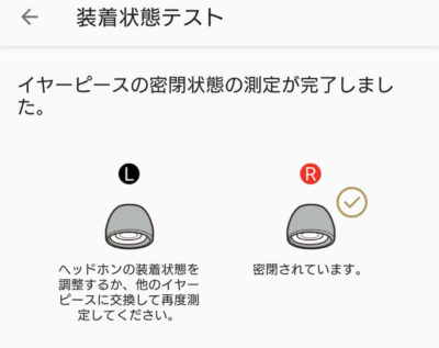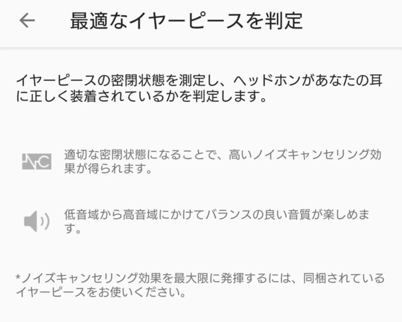 「最適なイヤーピースを判定」で正しく装着できていないことが多いので使うのをやめました。