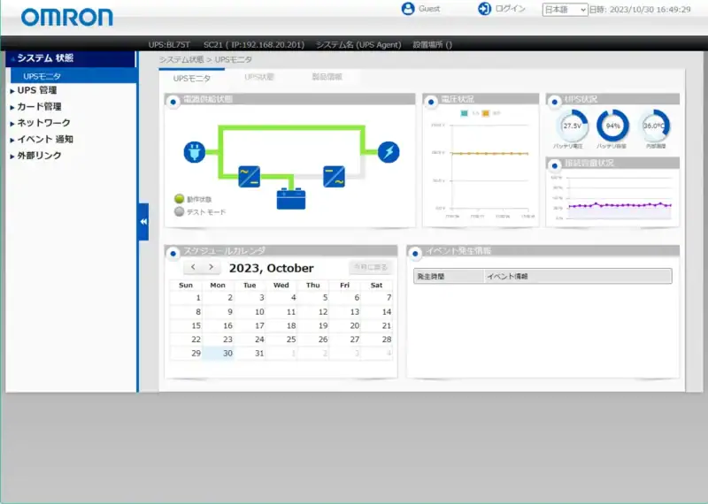 ブラウザでSC21のIPアドレスに接続することで、UPSの動作の確認と設定が行えます。