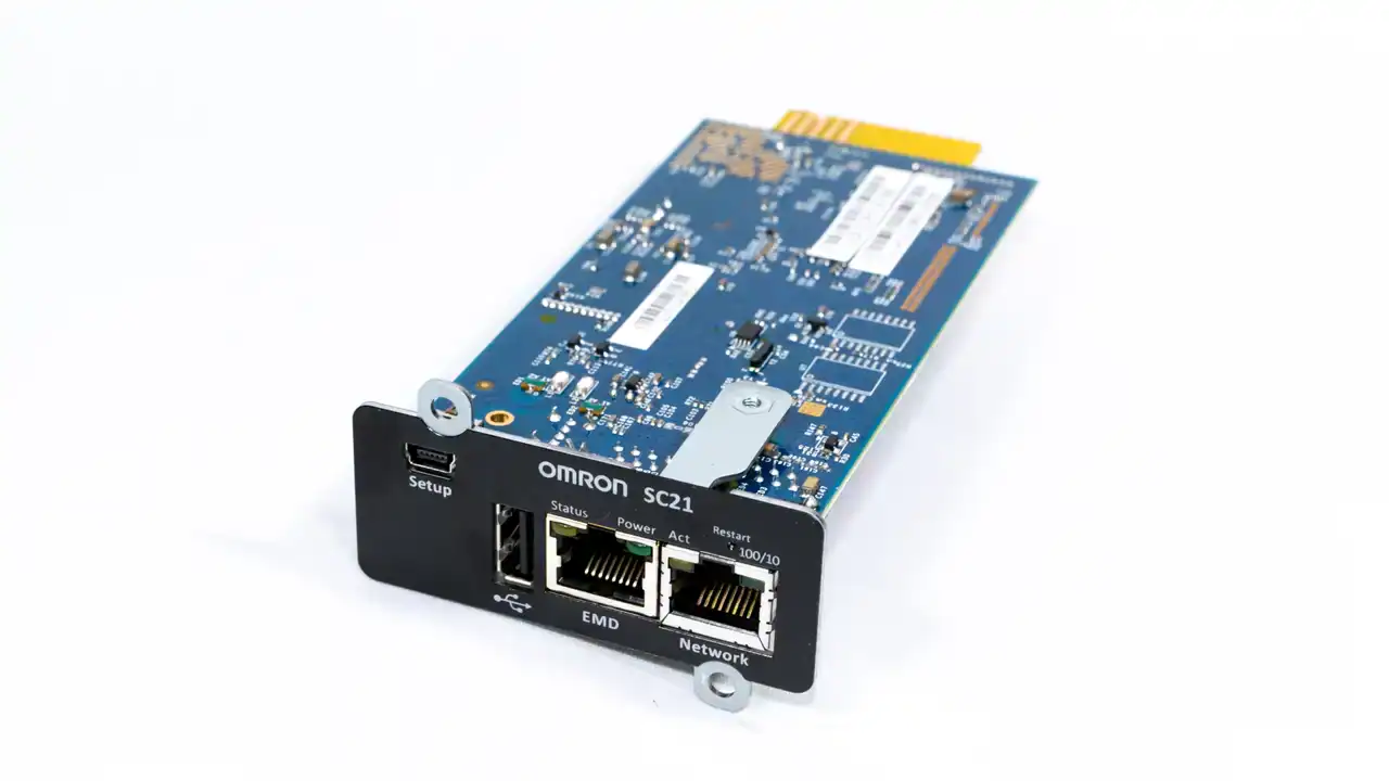オムロンのSC21はオムロンのUPSにネットワーク機能を追加する拡張カードです。主にオムロン UPSのBU/BL/BNシリーズに対応しています。