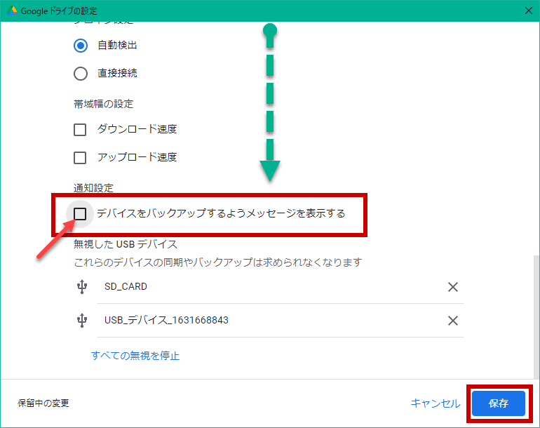 『Googleドライブの「」を追加』 の通知を無効にする方法