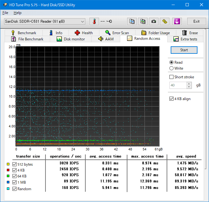 同じサイズのアクセスは均一で安定しています。サイズがランダムな場合は最小から最大の間で分散しています。