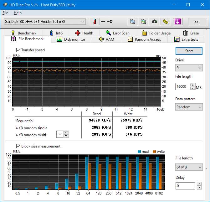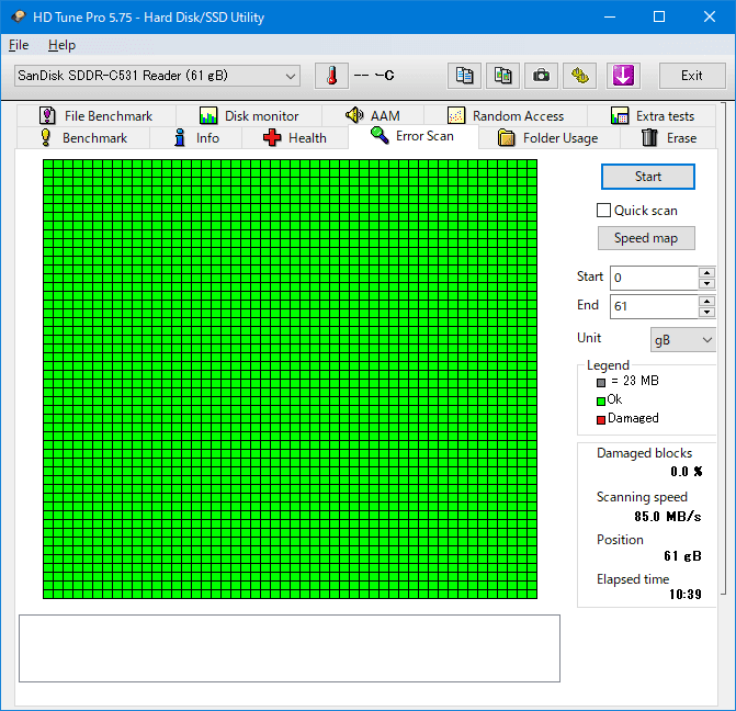 16GB分の読み書きは安定しており、容量全体に異常はありませんでした。