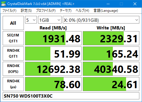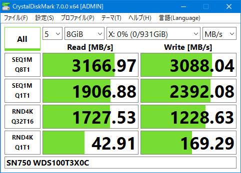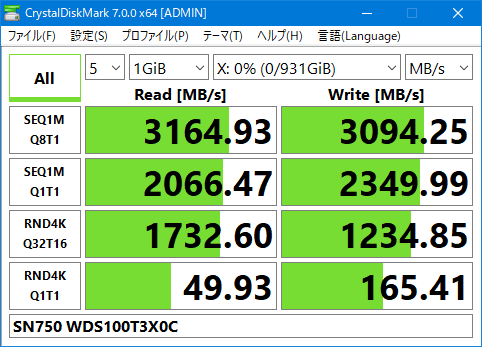 WD Black SN750 NVMe SSD 1TBの性能を測定