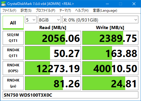 Cristal Disk Mark 7.0.0 x64 8GiB 5回 現実性能