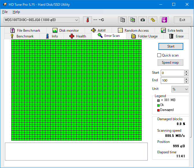 ついでに「Error Scan」で全容量を検査してみる。問題なし。