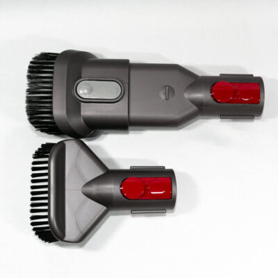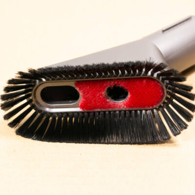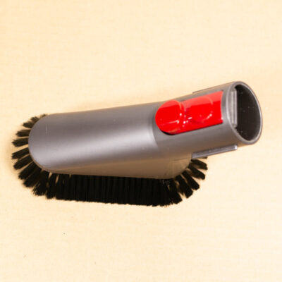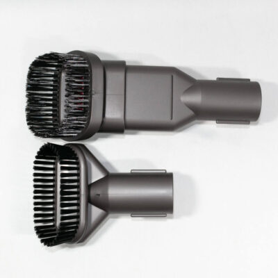 毛先が柔らかくて吸い込み口の周りにも柔らかいフェルト素材で当たる場所が傷つかないように設計されています。コンビネーションノズルよりも毛先が均一で、キーボードやモニターの掃除にはこっちを使う方が掃除しやすいです。ハードブラシは横向きですがミニソフトブラシは縦向きで吸い込む穴が小さくなっています。