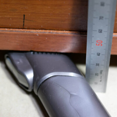 延長ホースを使って向きを調整すると厚さ3cm以上の隙間があれば隙間に差し込めます。長く伸びるので奧まで掃除が可能です。伸ばした状態で薄い部分はおよそ長さ45cmまで差し込むことができます。