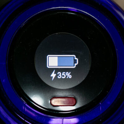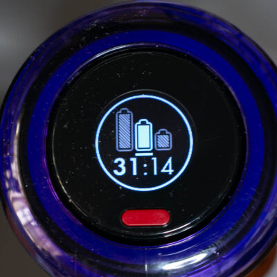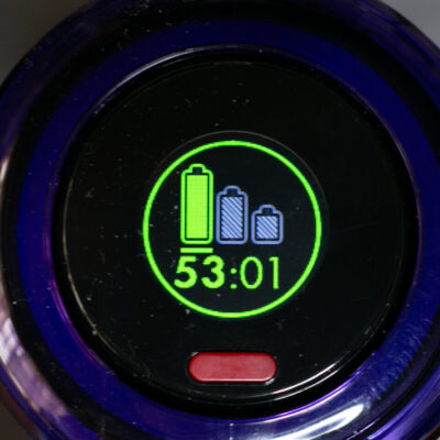 動作中はバッテリーの使える時間が液晶に表示されるので突然のバッテリー切れが起きずにどこをどう掃除するか調整しやすいです。バッテリー切れに中が必要なのは強モードを長く使うときで、中モードで掃除するときはバッテリー切れにならずに一通り掃除できています。