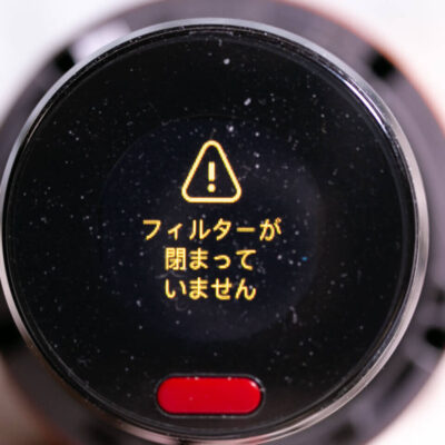 フィルターが正しく取り付けられていないと液晶に警告が表示されます。