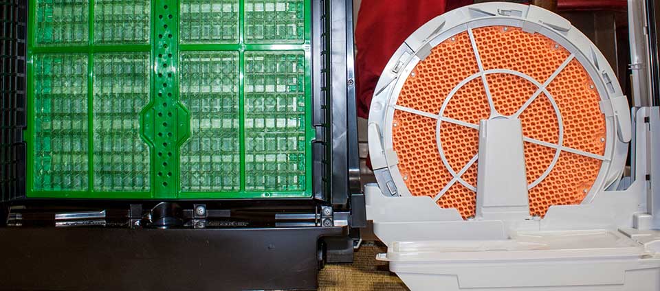 加湿機能は、水車によりトレイの水を上に持って行き下に垂らすという形です。フィルターが常に水に浸っているのとは違ってきちんと手入れをしていればフィルターの汚れというのはほとんど発生しません。ストリーマユニットが2倍の能力になったMCK70Vはそれ以上に汚れにくいと思います。