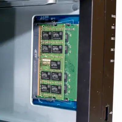 Synology DS923+では、メモリの1スロット増設に加え、初期搭載メモリの交換も可能です。最初に1スロットを増設し、さらに必要であれば追加のメモリで初期搭載分を置き換えることで、効率的にメモリ容量を増やすことができます。