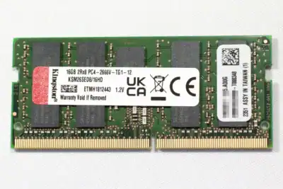 ここでは16GBの非純正メモリ、キングストン (Kingston)のKSM26SED8/16HDを使いました。購入時の価格は7,403円でした。16GBは片面が2列の両面実装となっています。容量が少ないメモリは片面実装の場合やチップの数が少なくなります。このメモリはDS923+でエラーや警告はありませんでした。