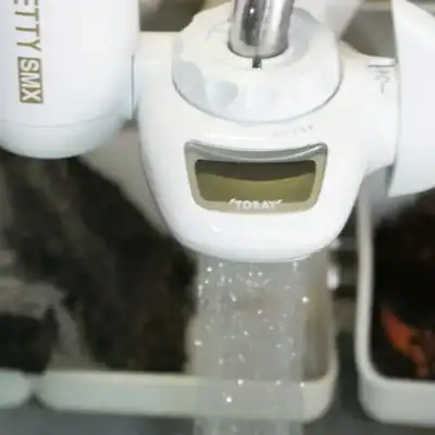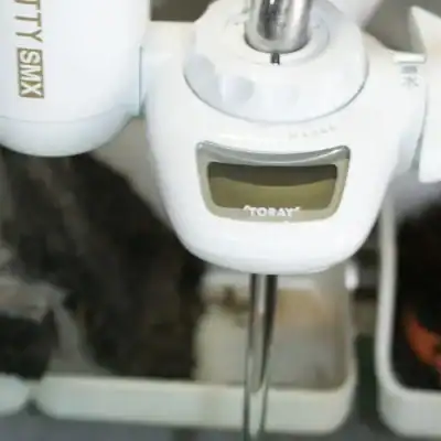 浄水はカートリッジで水の汚れなどが除去されてカートリッジからの細いシャワーとなって出てきます。浄水モートで水を出しているときはカートリッジの残り水量の数値(リットル)が表示されます。